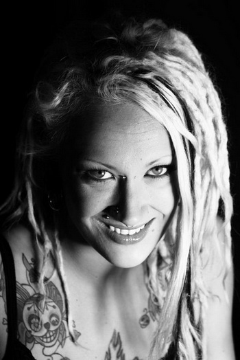 Stéphanie ne passe pas inaperçue avec son look dreadlocks, piercings et tatouages.